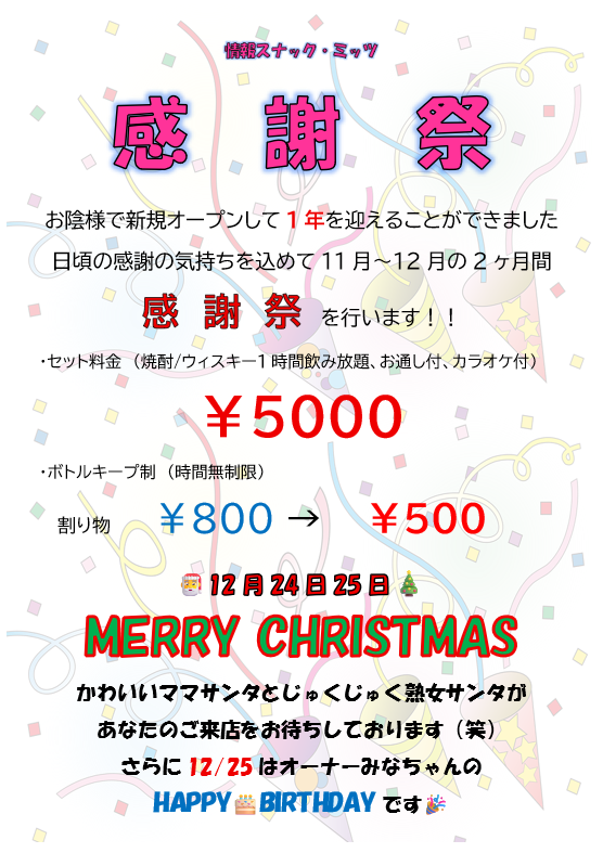 1周年感謝祭として、シャンパンやボトルの一部を割引して提供します。